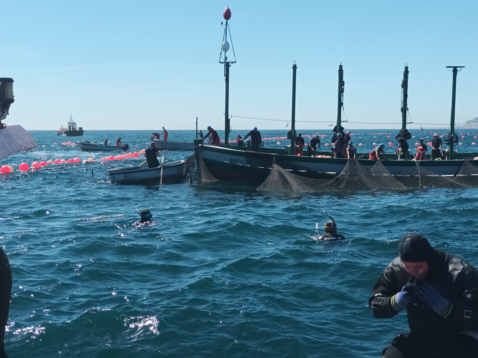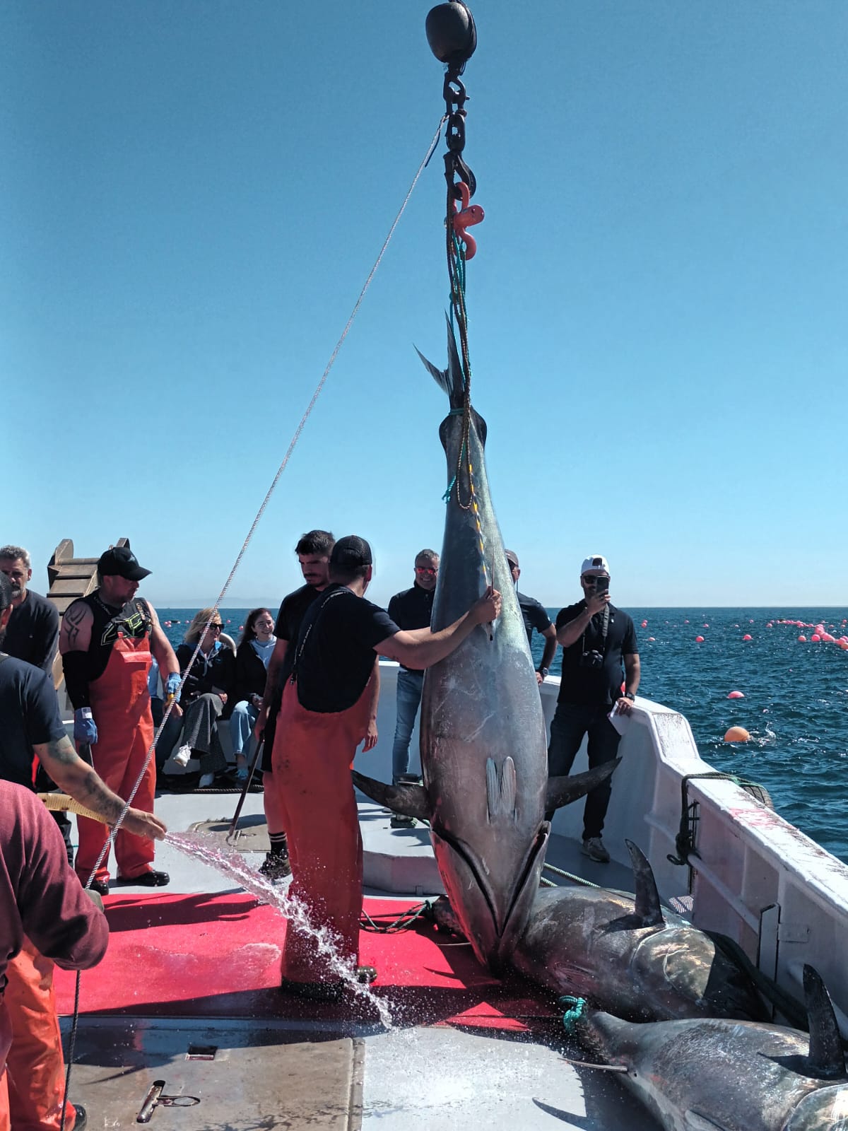 Primera levantá de atún rojo de la almadraba de Barbate: una pieza única.