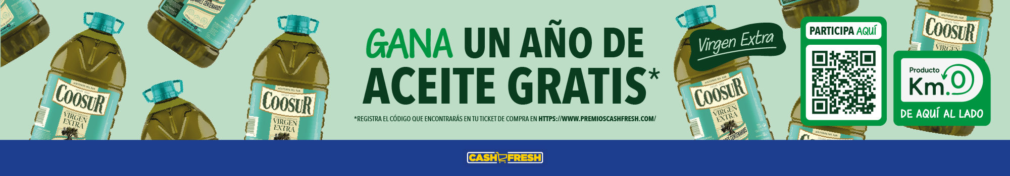 Entre todos los participantes que cumplan los requisitos de participación se sortearán 9 lotes de 5 botellas de Aceite oliva v.extra olivares centenarios COOSUR 5l “Aceite para todo un año”. 9 lotes de los cuales se sortearán 8 lotes en tiendas físicas y 1 lote se sorteará en las redes sociales de Cash Fresh.